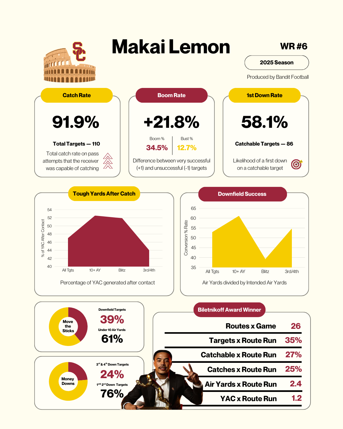 "[Makai] Lemon is from the tree, right. He's from the Amon-Ra St. Brown, the JSN — he's kind of in that lineage of wide receiver. My thing that I wrote about him was just deploy him like the Patriots deployed Julian Edelman and watch this guy catch 100+ balls every year.