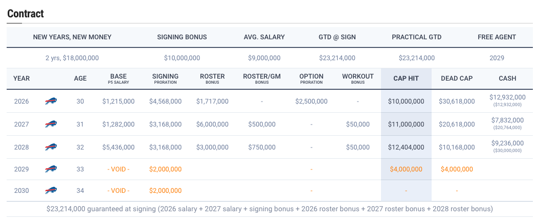 There's $12 million remaining on Knox's current deal, and this extension would give him a million-dollar raise in 2026 and more than $10 million in additional guaranteed money to stick around Buffalo on Allen's timeline.