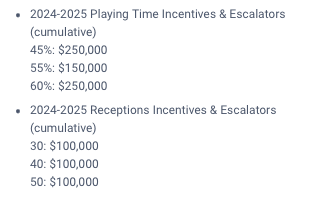 Player-friendly incentive structure: 2024-25 (cumulative) benchmarks