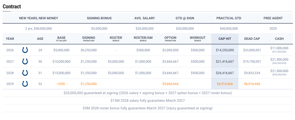 By early March, the wounds of the Jaguars playoff defeat will be a faint memory as the potential at Lucas Oil Stadium fills the suites with nothing but hope. The Colts are without their 1st round pick in 2026 and 2027. They could use all the draft capital they can get — even if it's just another Day 3 pick.