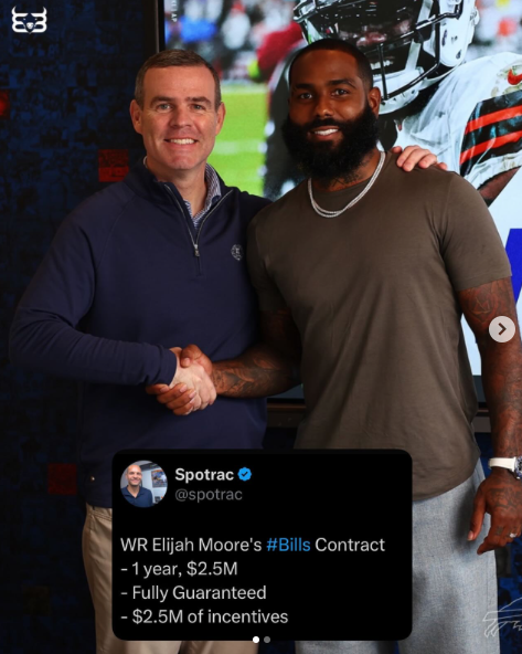 Elijah Moore was signed two weeks after the 2025 NFL Draft. The week before he was signed, Buffalo Bills GM Brandon Beane appeared on local radio WGR550 and took offense to the hosts criticizing the team's wide receivers.
