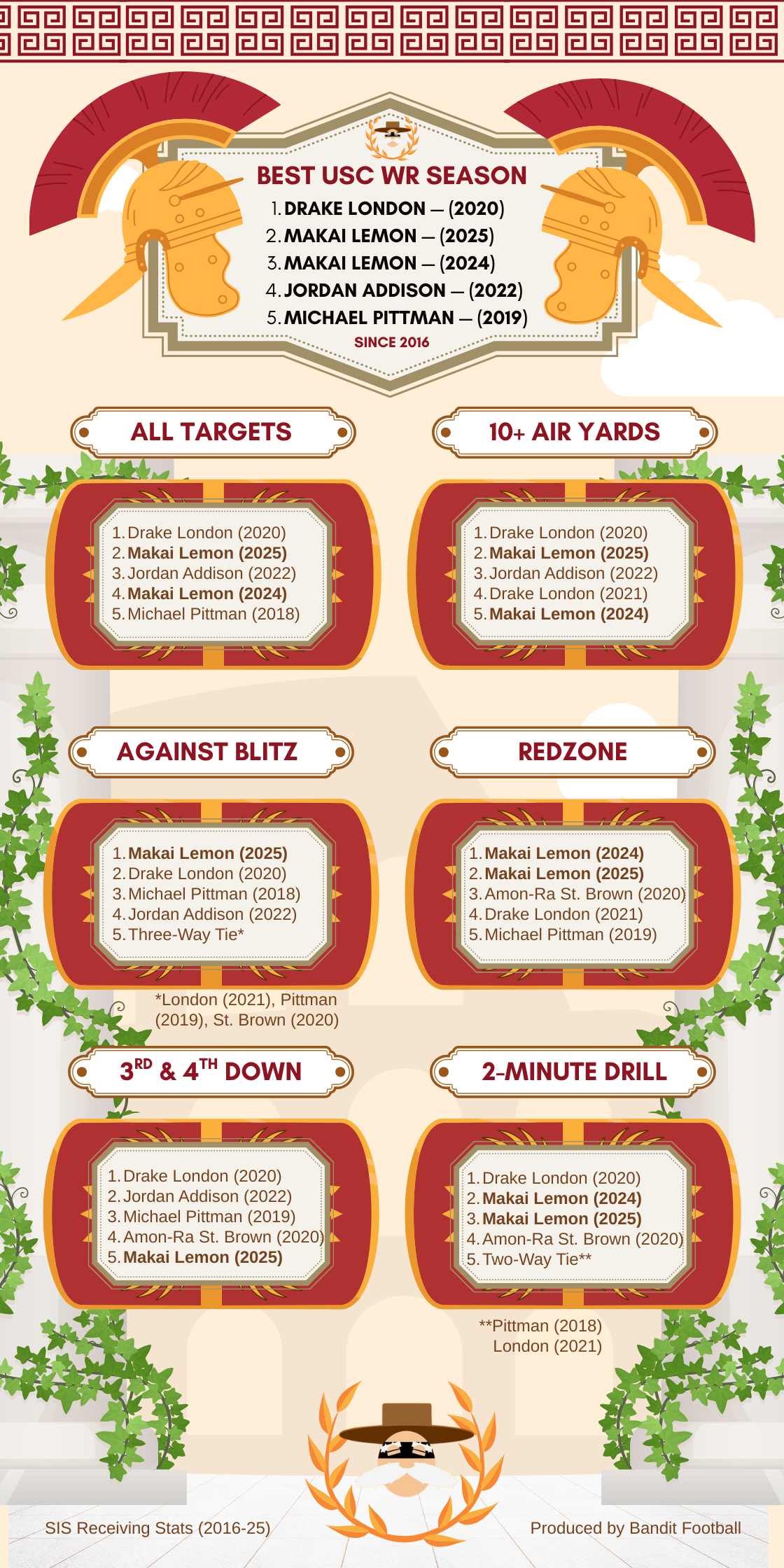 | Team | Season | Top WR | Recs | Yards |