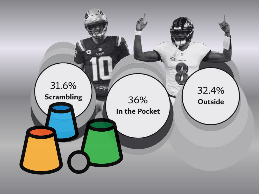 While both Maye and Jackson attempted the majority of their passes from the pocket with planted footwork, they were the only QBs who were just as likely to scramble as they were to throw from inside or outside the pocket once they got what Tom Brady might describe as "happy feet."